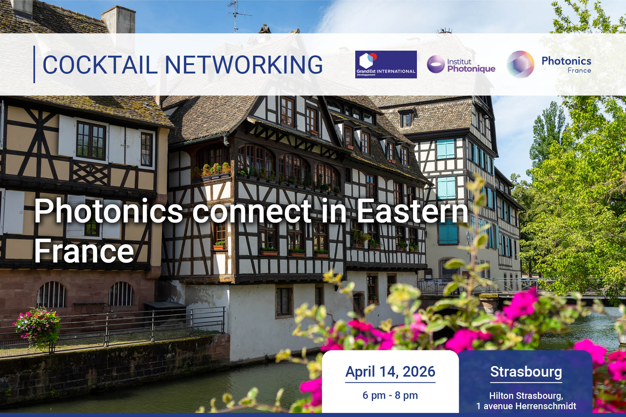 L'institut Photonique, Grand Est Développement International et Photonics France sont ravis de vous inviter à un cocktail de networking à Strasbourg.